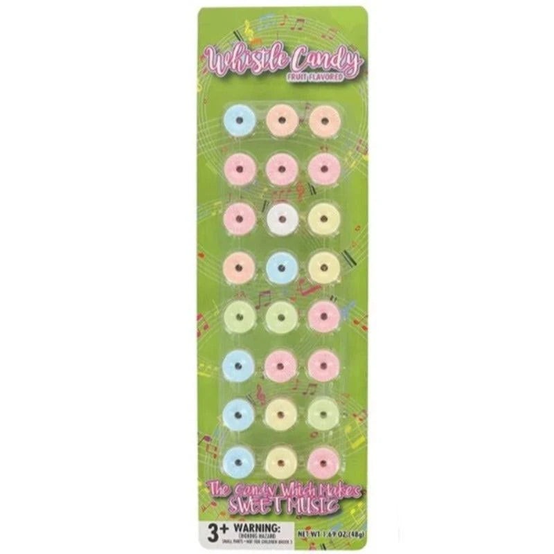 This charming creation combines the classic allure of fruit-flavored candy with the added thrill of being able to whistle through the center hole of each piece, adding an extra layer of fun to every bite.